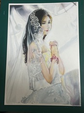 祈りを捧げるようでもあり、これからの幸福を願うような姿にもみえます。