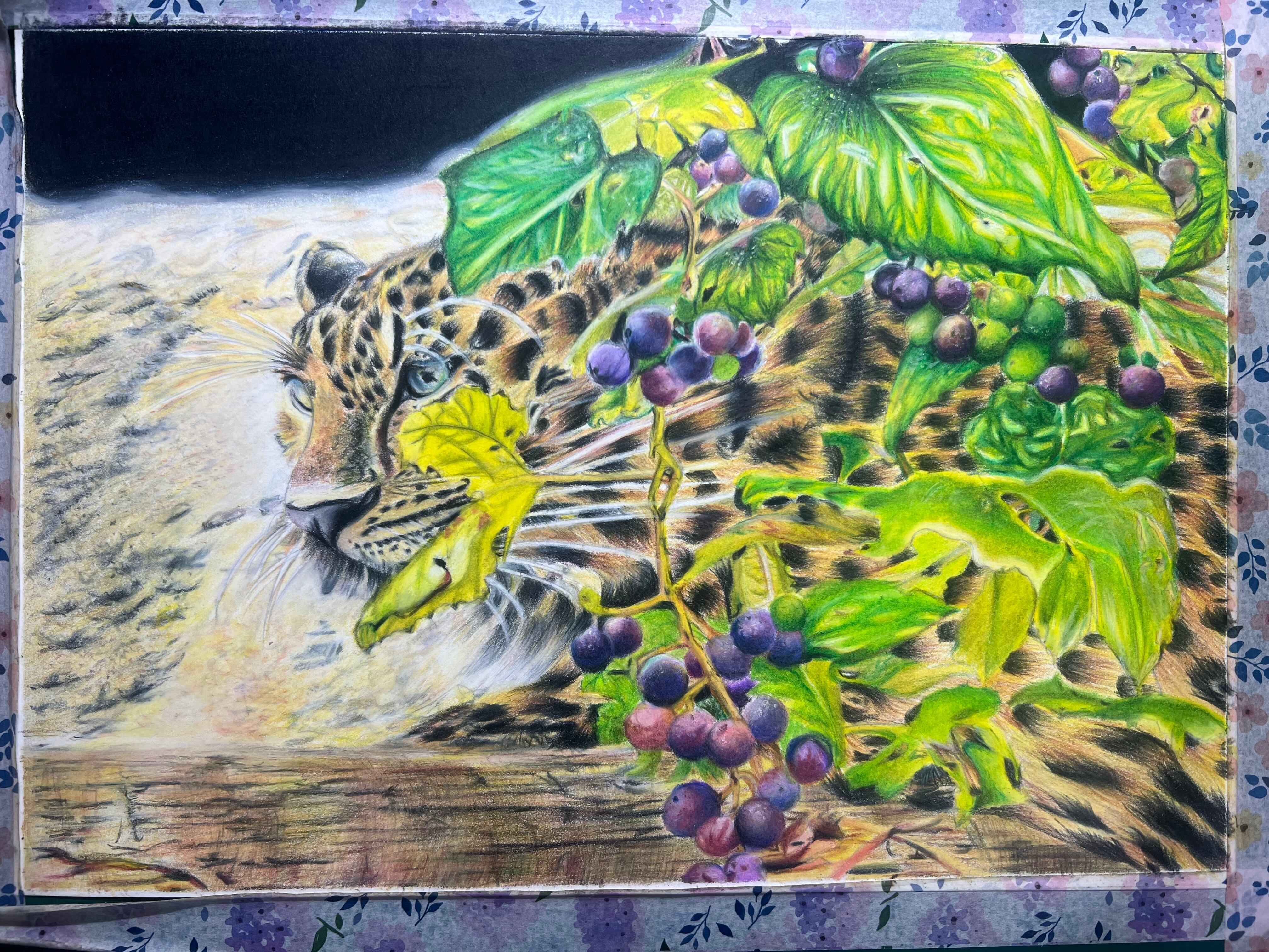 発色が良い色鉛筆で描いています。 ぶどうと同化するように静かに過ごす姿を描いています。 良き出会いになりますように サイズ:B5 ※原画のみの販売となります。